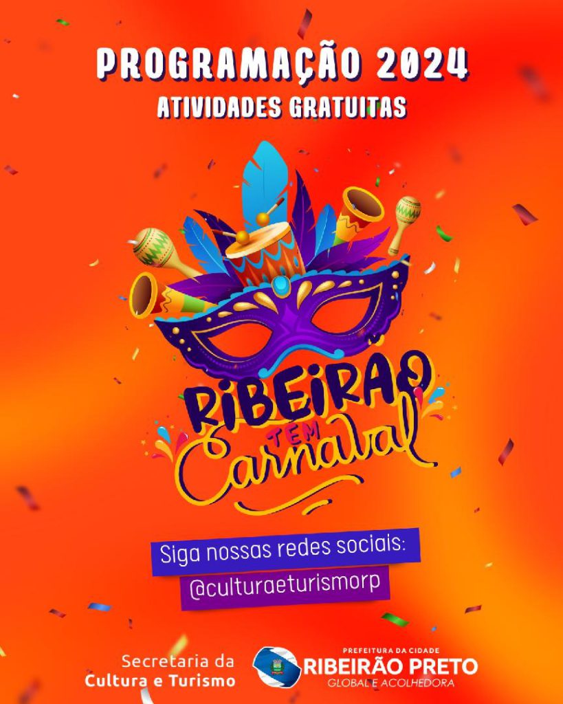 Começa nesta quinta-feira, dia 08 de fevereiro, o #RibeirãoTemCarnaval, com apoio da Secretaria da Cultura e Turismo. O folião ribeirão-pretano terá uma programação repleta de manifestações carnavalescas gratuitas pelos quatro cantos da cidade.
