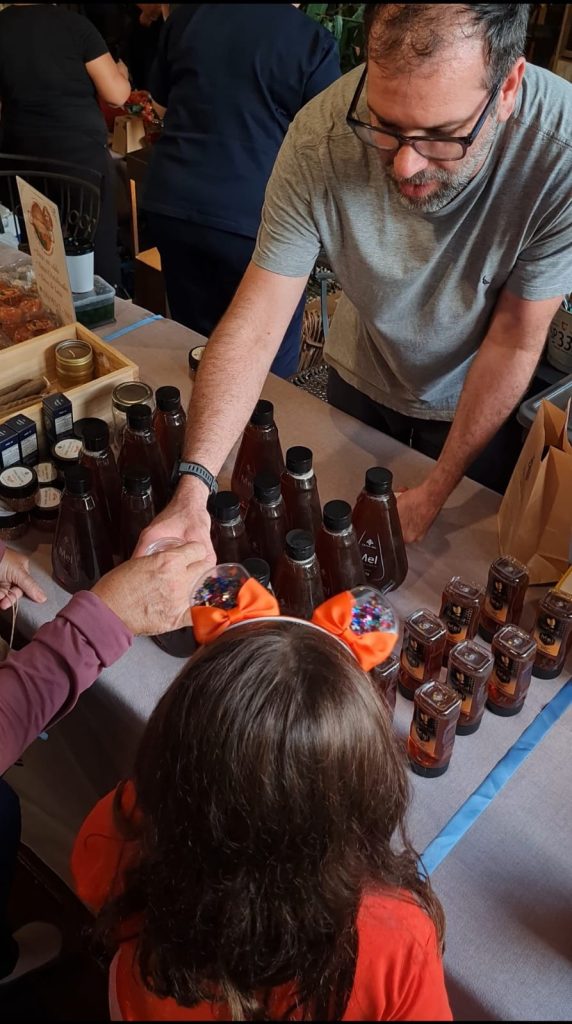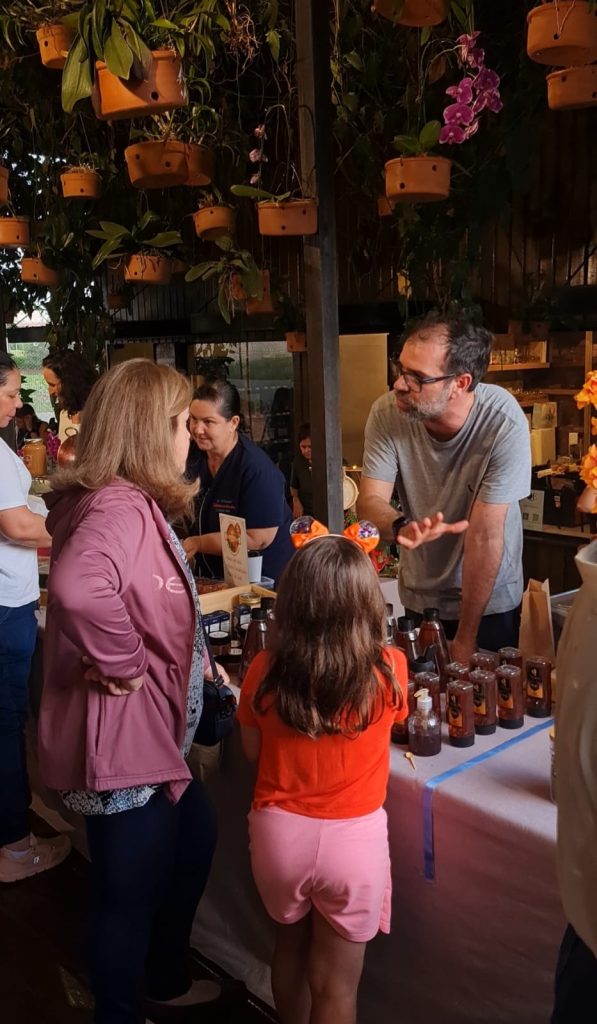 Um desses produtores participantes da feirinha é o apicultor Thiago Lira Buosi, que participa pela quarta vez. Ele começou sua trajetória em 2019 e é o criador da marca Fator Mel, especializada em produtos naturais derivados da apicultura. Pai da Lis Martins Buosi, de 8 anos, Thiago vê na paternidade sua maior inspiração. “Ser pai da Lis é uma das maiores alegrias da minha vida. Saber que sou uma referência para ela me faz querer ser melhor todos os dias — como pessoa, como pai e como empreendedor”, conta.