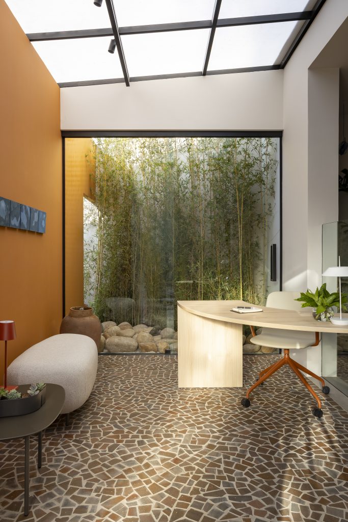 A relação entre bem-estar e contato com a natureza aparece em diversos ambientes da mostra, reforçando a tendência da biofilia como recurso de saúde e qualidade de vida.