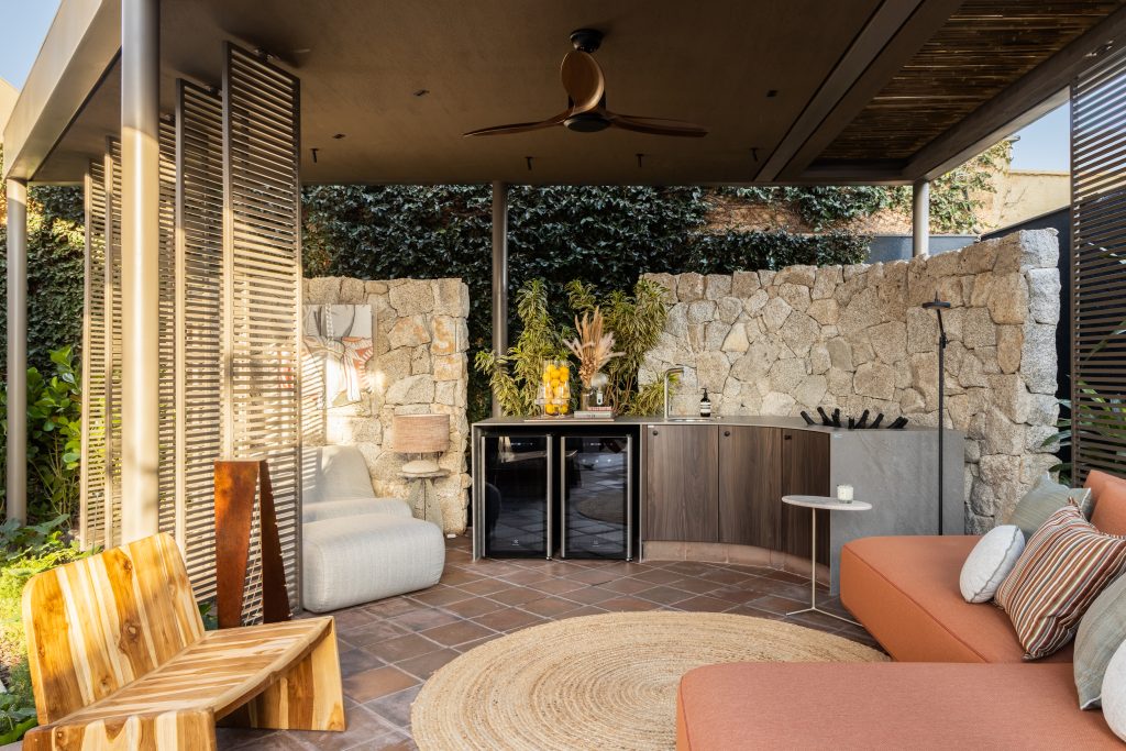 A sustentabilidade deixou de ser apenas um diferencial e tornou-se um elemento central nos projetos de interiores e arquitetura. Na mostra, é possível observar o uso de materiais como pedras naturais, palha, bambu e madeira em estado bruto, que reforçam a busca por ambientes de baixo impacto ambiental e estética mais orgânica.