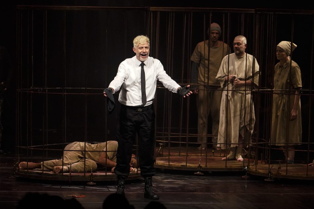 No porão da fome, a autora coloca em conflito os prisioneiros condenados a morrer na cela: o Padre, o Carcereiro, o Poeta, o Estudante e o Joalheiro, que são visitados pelo Oficial da SS, pela Mulher que limpa os fornos e por Hans, o ajudante da SS. Na montagem, eles aparecem isolados, confinados em gaiolas como um signo, uma alusão à prisão onde a história se passa. “A primeira coisa que os governos totalitários e ditatoriais fazem ao prender alguém é destituí-lo de sua dignidade e submetê-lo ao sofrimento extremado, e isso os nazistas fizeram com requintes inimagináveis de crueldade”, comenta o diretor. Segundo ele, a proposta de concepção de Hilda Hilst é muito clara, colocando as personagens em estado de reflexão sobre suas próprias condições no confinamento. A leitura que a autora faz dos aspectos éticos e humanos passa por questionamentos sobre Deus, sobre o mal e sobre a crueldade.
