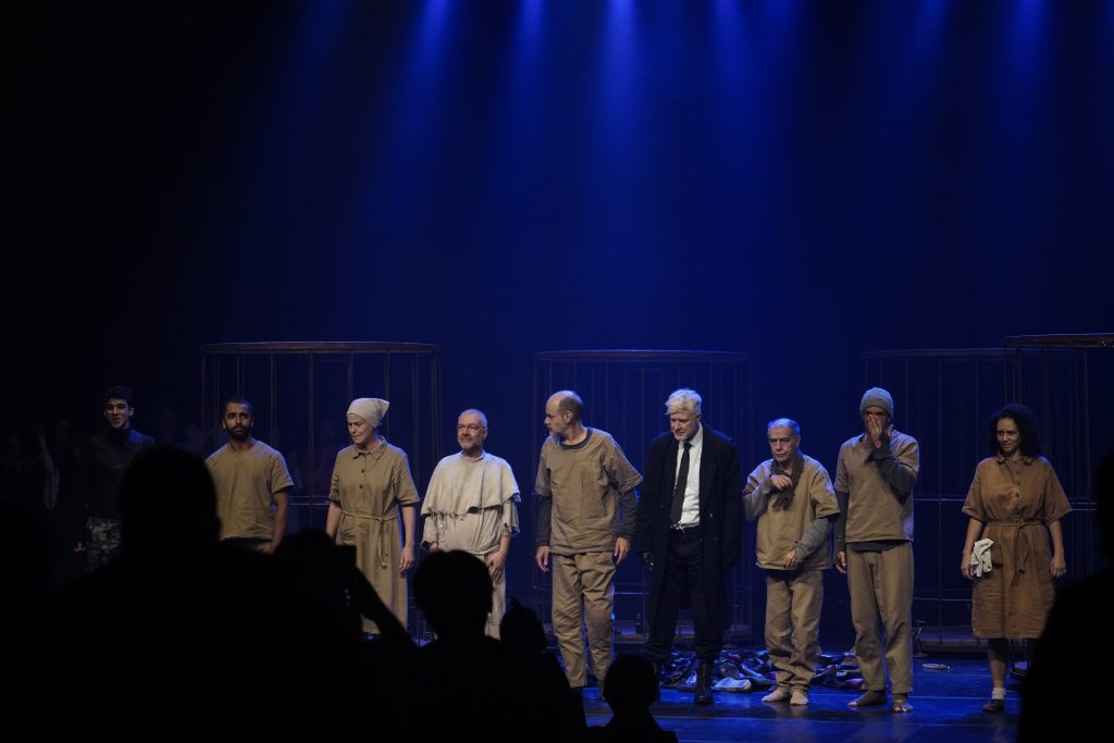 O cenário, que traduz o cárcere com gaiolas humanas, foi concebido pelo diretor. O figurino (de Rosângela Ribeiro) faz alusão aos uniformes de presidiários, reforçando a imagem do encarceramento. A iluminação (de Fran Barros) dá foco a cada personagem, reforça o clima denso e claustrofóbico do ambiente. A trilha sonora, assinada por Ricardo Severo, traz uma canção original do texto que remete à tradição judaica, cantada pelas personagens, e segue a mesma orientação da iluminação: “não faria sentido apenas reproduzirmos o que fizemos no vídeo, pois agora estamos no palco, que tem a sua dinâmica e necessidades próprias. Quem viu a peça online e for assistir no teatro vai encontrar cenas e tratamentos diferentes, inclusive com introdução de novos elementos”, explica o diretor.